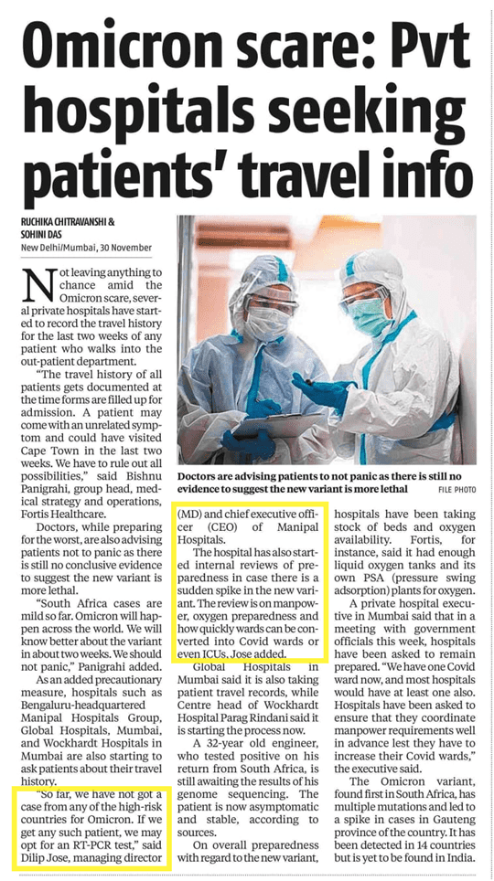 Dr H Sudarshan Ballal, As you rightly pointed out it is a new variant and we do not have enough information. From whatever we know, it is extremely infectious, far more infectious than the Delta variant. However, until now, from what we have seen, we have learned that it is an extremely mild disease.