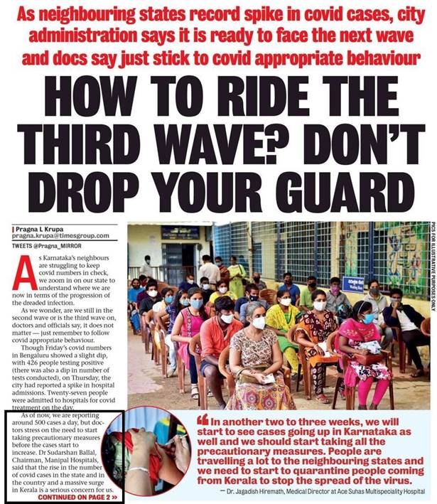 Dr H Sudarshan Ballal speaks on the impending third wave while advising to continue to adhere to strict Covid appropriate behavior on MIRROR NOW last night