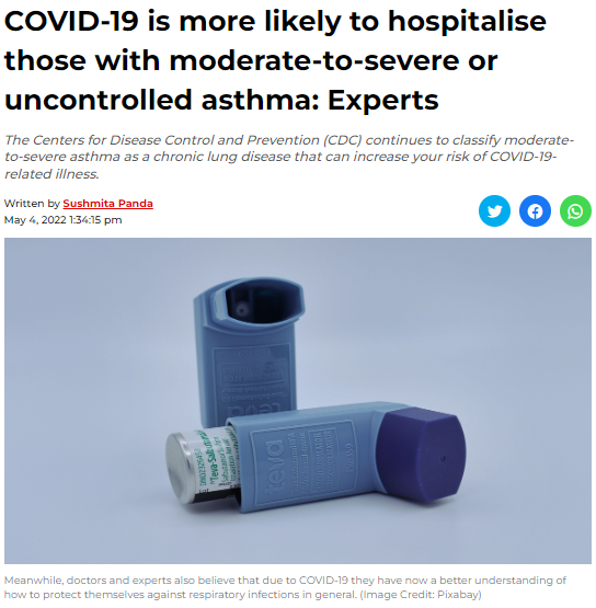 Headline: COVID-19 is more likely to hospitalise those with moderate-to-severe or uncontrolled asthma: Experts