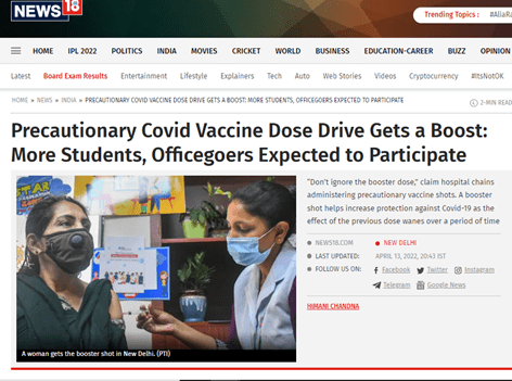 Link: https://www.news18.com/news/india/precautionary-covid-vaccine-dose-dr... https://www.news18.com/news/i...